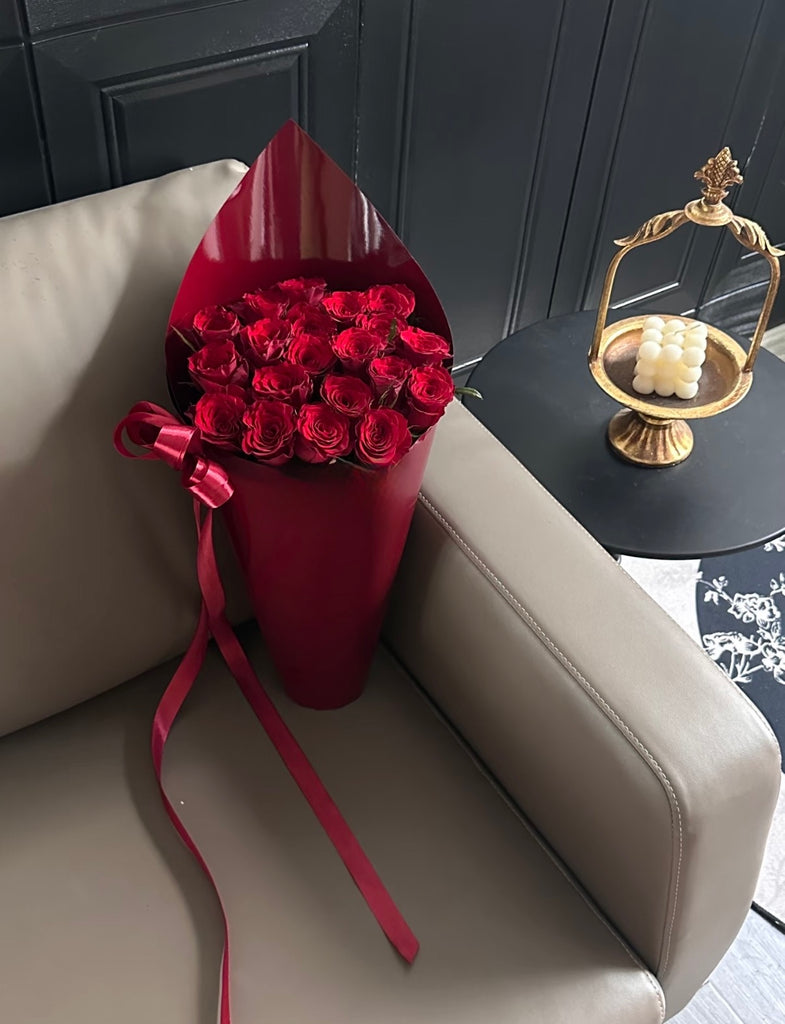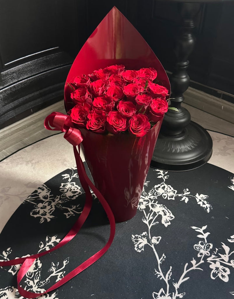 This arrangement uses flower foam. It is not a hand tied bouquet
